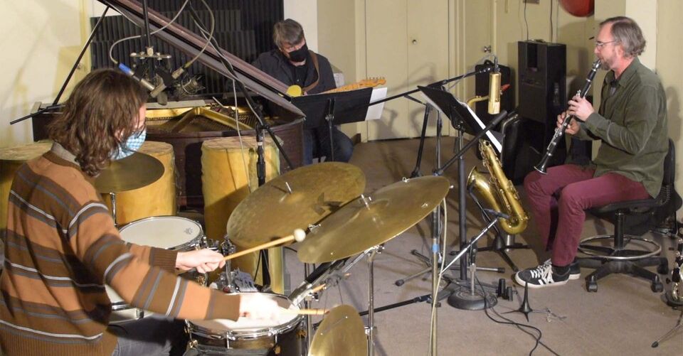 Oakland artists Nathan Clevenger, Jordan Glenn, and Cory Wright share a long and entwined history of collaboration across various projects, including Wiener Kids, Ashen Cleric, and Fellow Hominids. In early 2021, in the depths of the Covid-19 quarantine, Nathan was asked to assemble a small ensemble for a socially distanced online music festival – the Karl Evangelista-curated Unsolitary Series – and this ensemble was born. Working from, between, and against Clevenger’s compositional frames and utilizing the multi-instrumental flexibility of each player, the trio weaves between non-idiomatic improvisation and often gnomic composed material, with focus on spaciousness and timbral detail.
