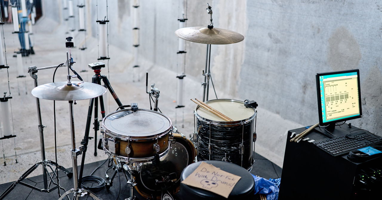 "VOLUMES" is a project by multidisciplinary artist Ezra Masch: an audio-visual instrument that uses a drum set to activate a site-specific grid of lights. The volume of the sound corresponds to the volume of the gallery/exhibition space. The system translates sound into a visual language, allowing percussionists to express their ideas 3-dimensionally. It is an immersive, multi-sensory experience that is part instrument, part sculpture, and part performance. Masch sees this work as an opportunity to experiment with the process and perception of sonic performance. Participating drummers explore the relationship between temporal space and physical space, as well as the connection between sound and moving image. The connection between light and sound has fascinated artists, musicians, and scientists for centuries, Masch’s installation is inspired by audio-visual instruments dating back to the early 1700s. His exploration of sound and moving image touches on an array of interests including synesthesia, architecture, technology, and experimental film.