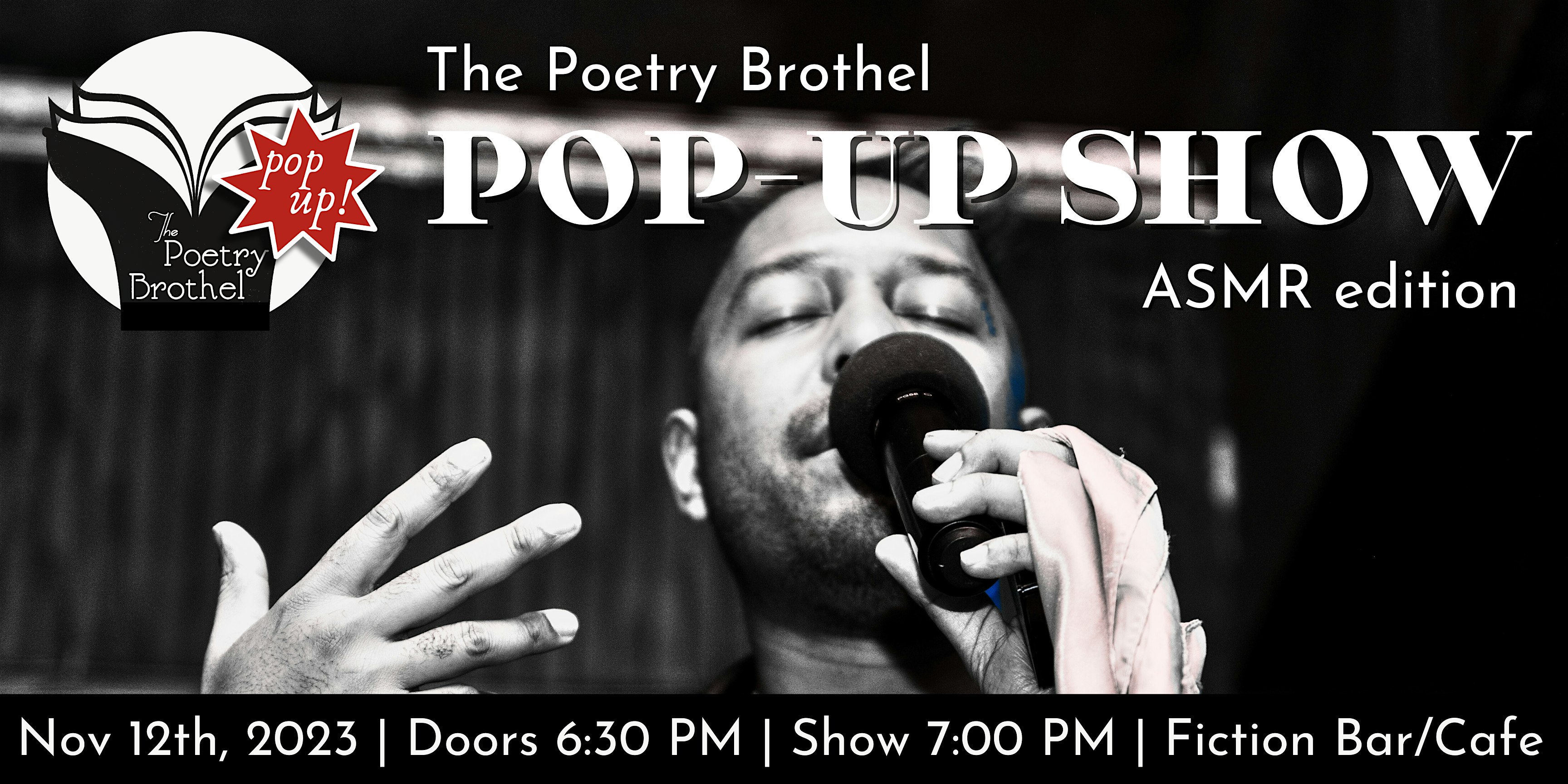 The Poetry Brothel will take over the Fiction Bar & Cafe at 308 Hooper St in Brooklyn for a special edition of the Poetry Brothel using ASMR binaural audio technologies to give each and every audience member an intimate phonic experience. Additionally, since this is a Pop Up, consider this show a Poetry Brothel happy hour! We will have reduced ticket and token prices so you can purchase readings to your hearts content.