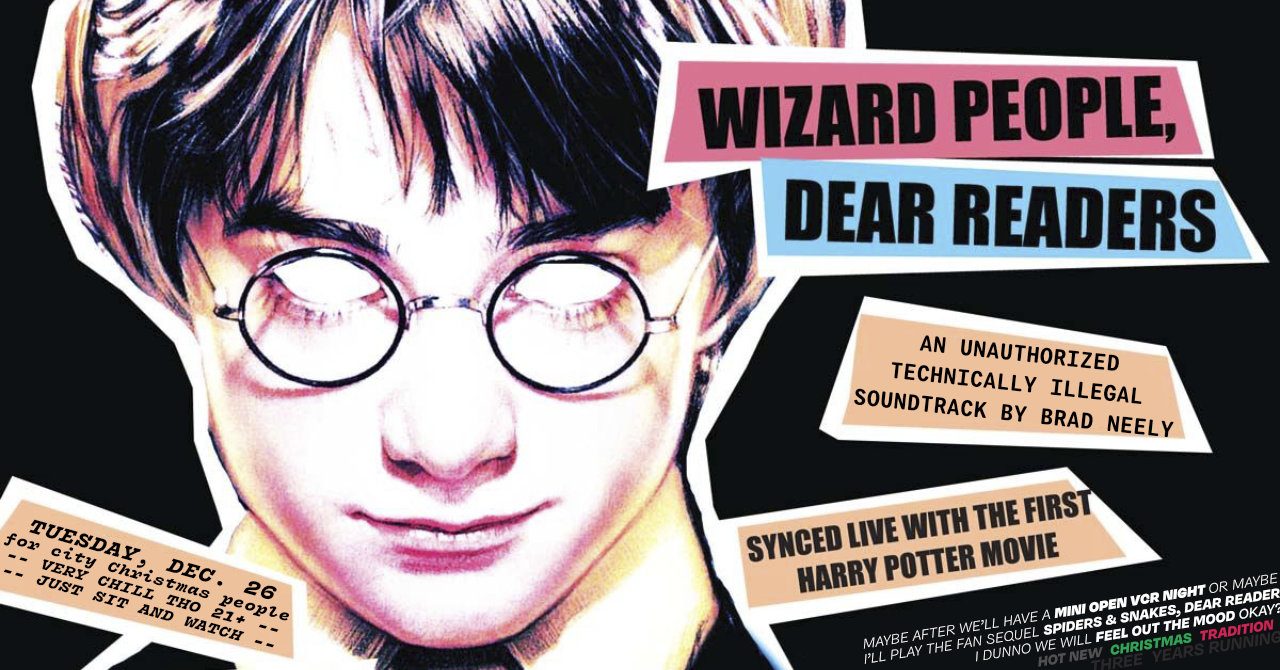 The third annual! A screening of the immensely weird & totally illegal (according to Warner Brothers) parody/remix of Harry Potter and the Sorcerer's Stone, but where Brad Neely voices every single character. And also the plot is completely different.
