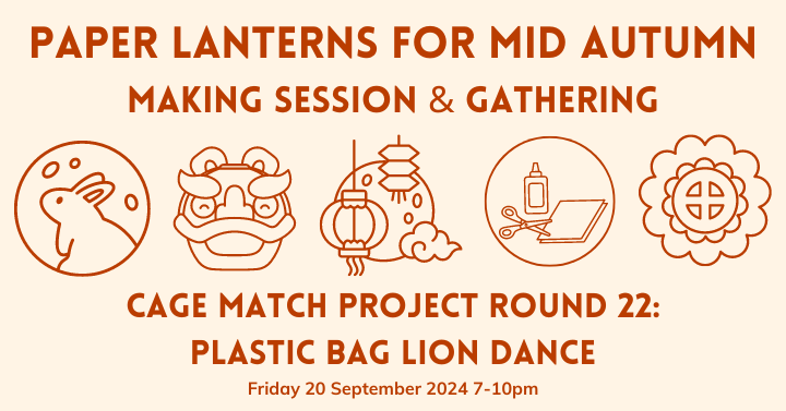 Come make paper lanterns to celebrate Mid Autumn Festival, and experience Cage Match Round 22: Plastic Bag Lion Dance at night! This session will be outdoors by the Cage, and it is free and open to all. Materials will be provided.