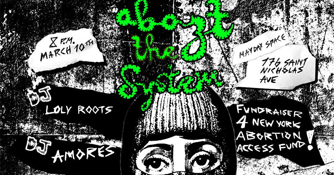 We’re fundraising for the New York Abortion Access Fund—with a punk show, here at Mayday! The New York Abortion Access Fund supports anyone who is unable to pay fully for an abortion and is living in or traveling to New York State by providing financial assistance and connections to other resources. New York City is a major destination for many people across the country seeking abortions for a number of reasons. Some people find that abortion is more affordable in NYC than in their home states, others come from areas where there are no abortion providers at all, and others come because they may be able to have procedures done in later stages of pregnancy.