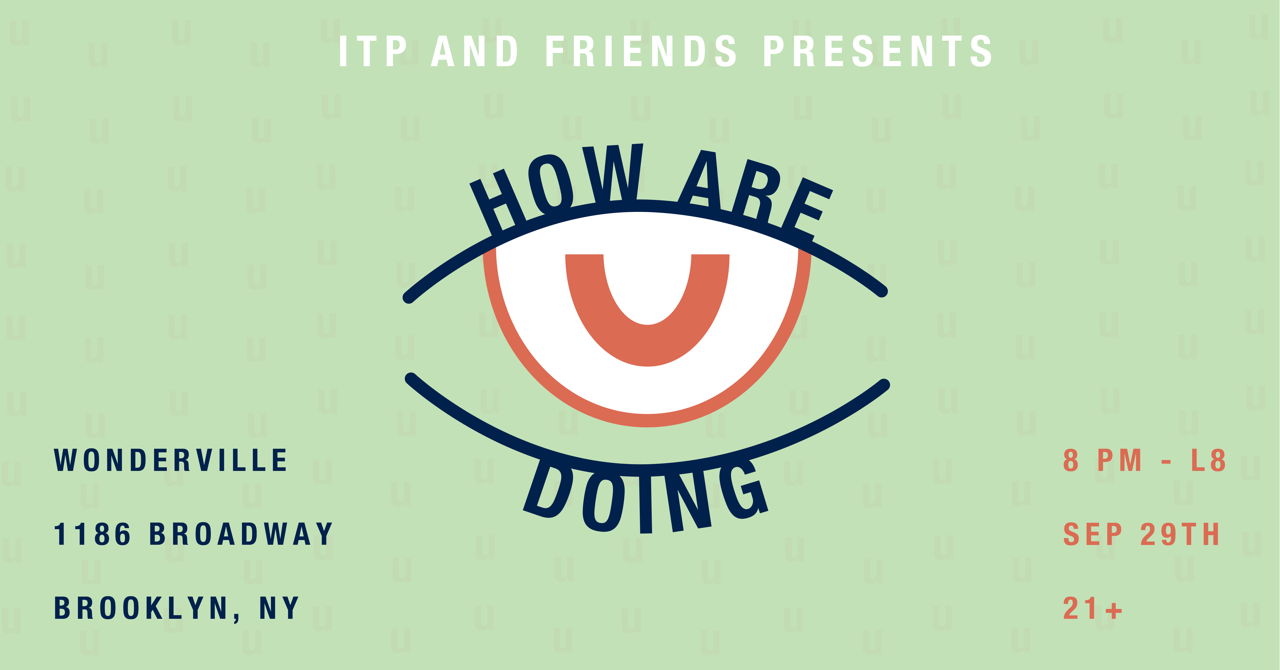 Join ITP & Friends for "How Are U Doing?" at Wonderville on September 29th to have some fun and ask your friends "how are you?". Expect boundary-pushing live music and visuals by artists in the creative technology community.