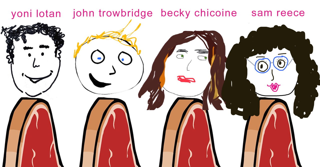 Hi! We are Yoni Lotan, Sam Reece, John Trowbridge, and Becky Chicoine. Four NYC-based comedians and writers who you've seen on Netflix, Comedy Central. Nickelodeon, and everywhere comedy happens. We are the hosts of LOW STAKES a new experimental comedy show at City Reliquary. We started LOW STAKES to give people a place to try stuff out and to foster a comedy community that has been decimated by the pandemic. Please come! No pressure!