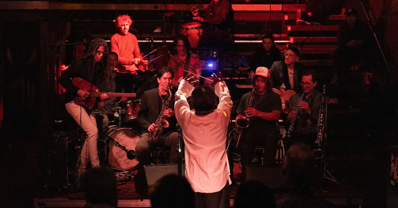 Starting in 1990, Graham Haynes was a conduit for the American cornetist and composer Butch Morris’ structured improvisation method, called Conduction®, a singular form of large-group improvisation in which conductors and ensembles “duet” using a system of signals and gestures. At Nublu, the club and label on Avenue C, Graham was an early member of an evolving, composite group of wildly varied musicians that formed the Nublu Orchestra under Butch Morris’ baton. Butch’s conductive language could manipulate musicians’ harmonies, rhythms, and phrasings regardless of their technical, theoretical, stylistic or cultural background. As an heir to and interpreter of the method since Butch’s death in 2013, Graham has introduced Conduction® to conservatory students, electronic musicians, and to players local to his home in Bahia, Brazil. In March 2024, he led two nights of Conduction® with the Nublu Orchestra as part of his multifaceted month-long residency at FourOneOne. On January 21, 2025, he returns for one night of Conduction®, primarily with musicians new to the form: Arina Bagaryakova, Chris Bates, Che Buford, Miranda Daiagnew, Key Hutch, Kenneth Jiménez, Doyeon Kim, Shara Lunon, Eden Mastriani-Levi, Hani’el Mastriani-Levi, Vivek Menon, Yuma Uesaka, plus longtime collaborators Shakoor Hakeem, Mauro Refosco, and Brandon Ross.