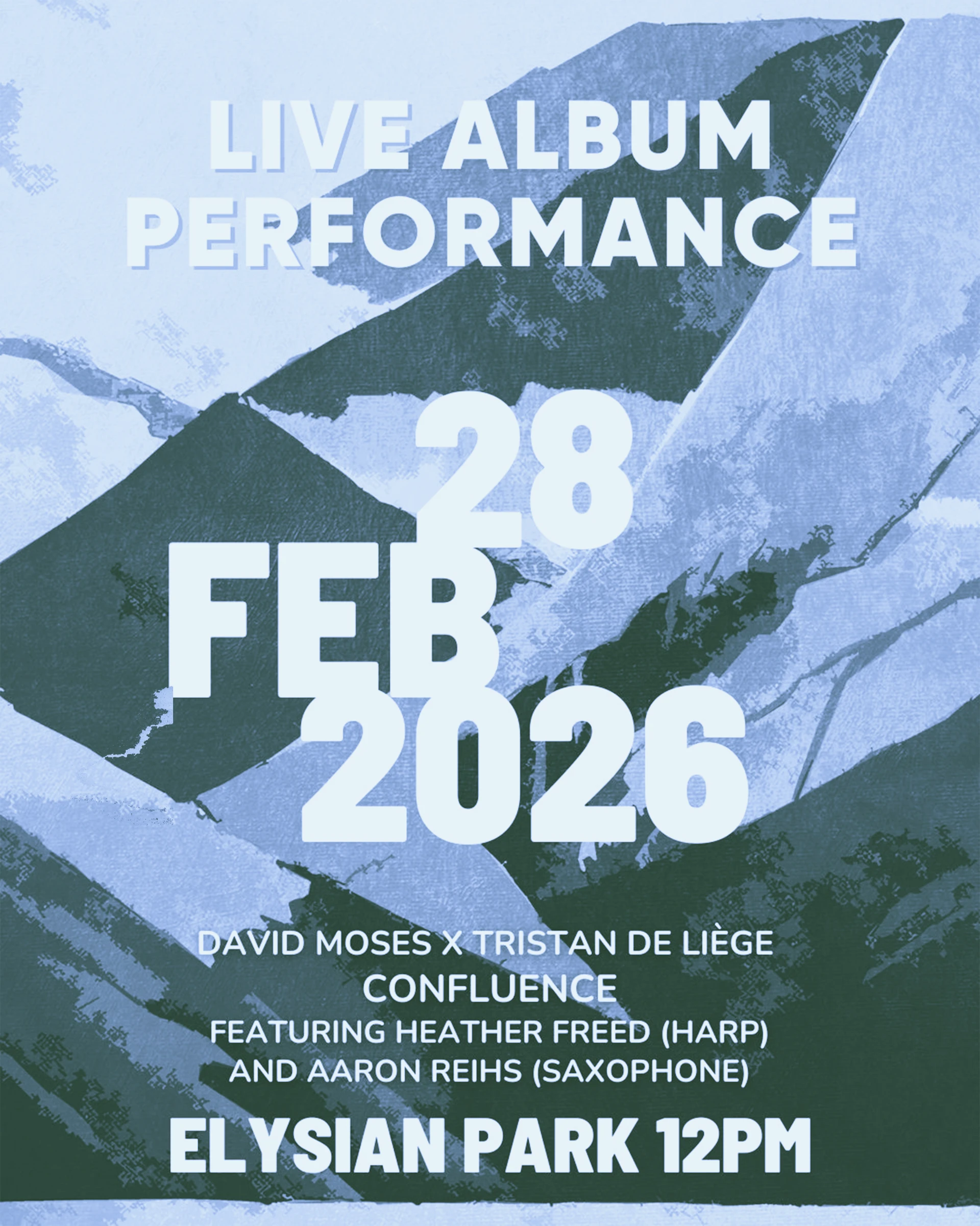Gather atop Elysian Park to hear David Moses and Tristan de Liège perform their ambient experimental record Confluence, released in late 2025 on the Portland-based Holy Volcano Records. They will be joined by Heather Freed on harp and Aaron Reihs on saxophone in gorgeous afternoon ensemble.