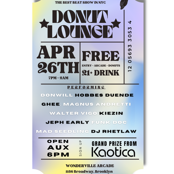 An electronic music & tech show, The LAST SATURDAY of every month in 2025 - only at Wonderville Arcade NY The Donut Lounge returns home to Wonderville for a fully immersive evening of banging lofi beats, visual eye candy, free donuts/designer video games, and all your friends (current and future). Outrageously chill vibes all around with a sweet raffle for some Donut Lounge related goodies.