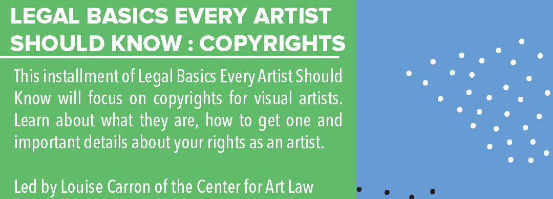 This installment of Legal Basics Every Artist Should Know will focus on copyrights for visual artists. Learn about what they are, how to get one and important details about your rights as an artist.