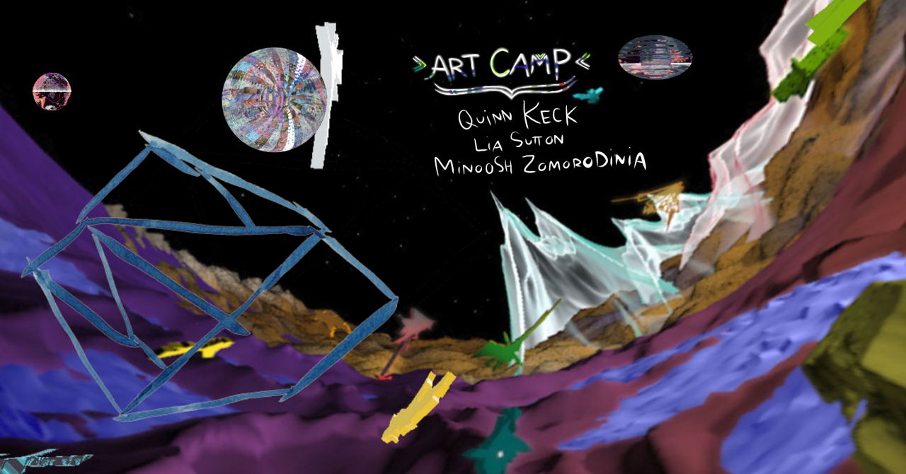 Art Camp is a homesome virtual art residency and gathering, an alternative to our many missing social events. Womxn and underrepresented artists investigate the possibilities of creating and inhabiting a communal place with care, that is accessible both on a browser and in virtual reality. The residency accumulates in the Show & Tell on the last Sundays of every second month.