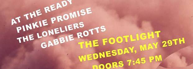 At The Ready, Pinkie Promise, The Loneliers, and Gabbie Rotts (ATL) perform at The Footlight on Wednesday, May 29th! Doors 7:45 pm. $10.