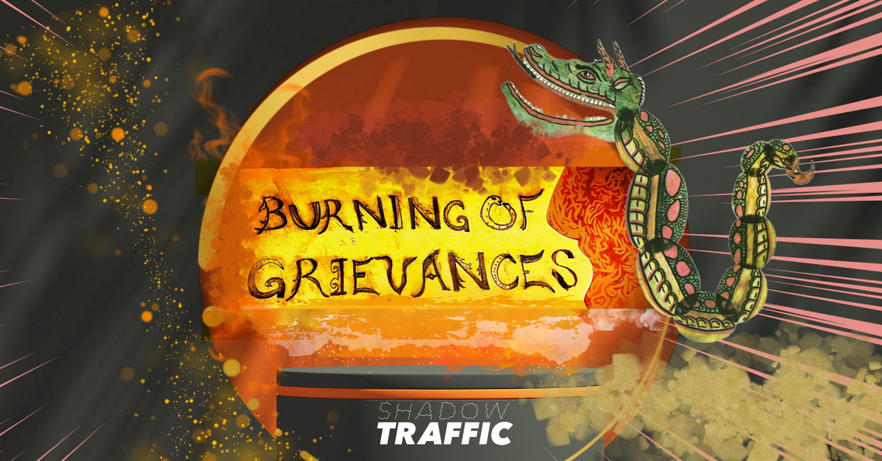 Maybe some of the grievances you wanna shed are about you? Make a shadow puppet for your shadow self and burn the effigy of the things you wish to release. Bring a mask that displays who you are in the moment--or what it is about you that you wish to burn.