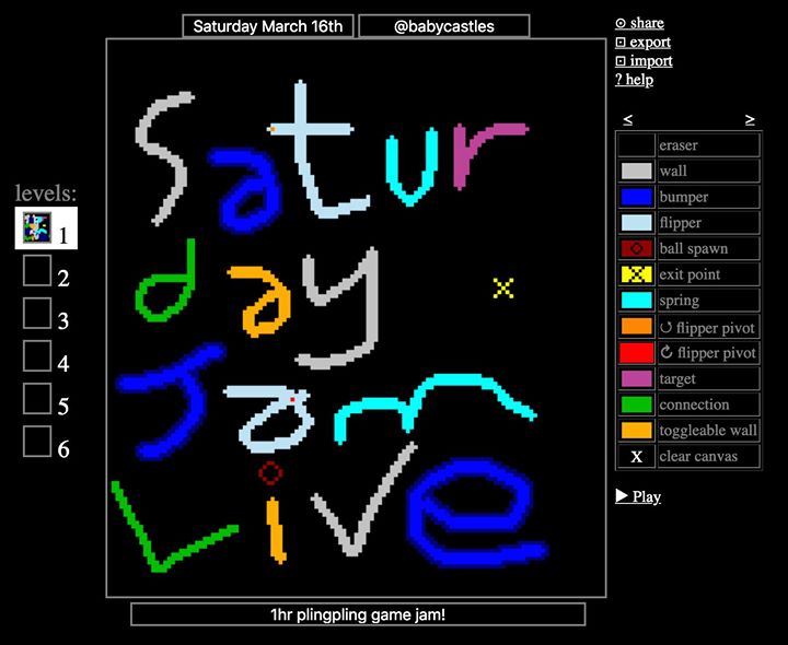 Join us on itch! https://itch.io/jam/saturday-jam-live-pling-pling