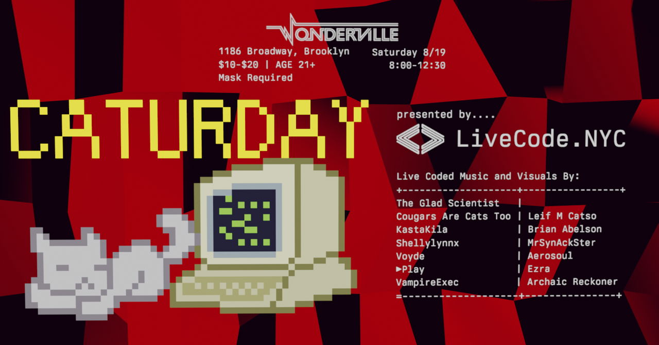 Saturday, August 19th, LiveCode.NYC teams up with Wonderville once again to present: Caturday, a celebration of our favorite felines, their memes, and our love for weekends!