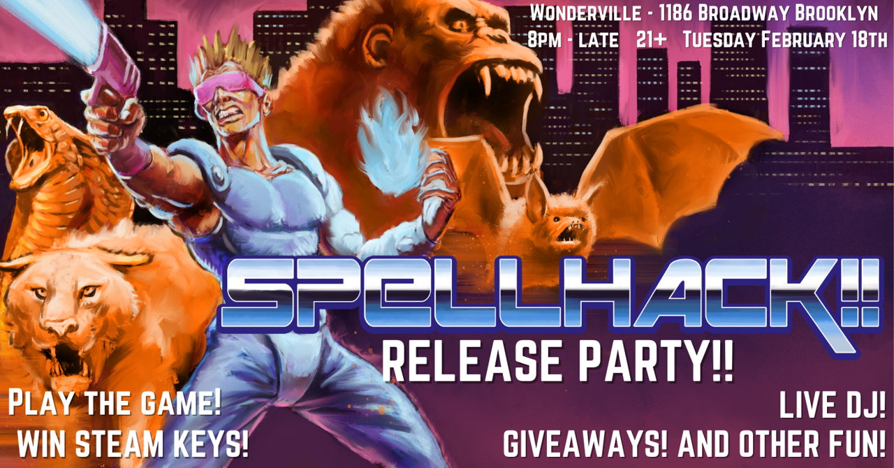 SPELLHACK!! is a real-time survival deckbuilder, created by a solo developer in Brooklyn! The launch party is celebrating the 1.0 release, and will include a playable challenge build to win Steam keys, some fun special challenges, and vertefeuilles DJing live! Come check it out!
