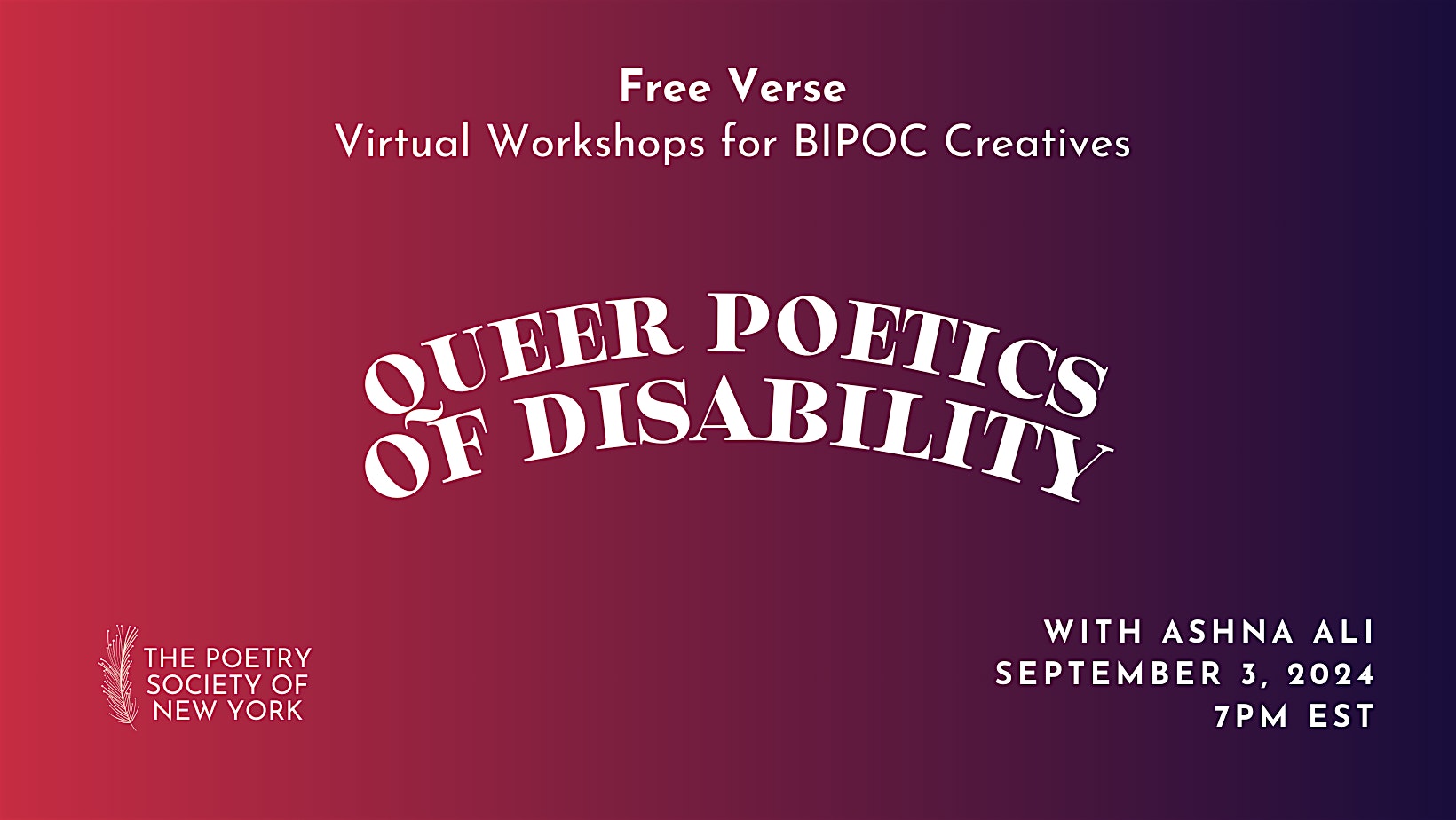 About the instructor: Ashna Ali is a Best-of-the-Net-nominated queer, disabled, and diasporic poet, writer, and educator raised in Italy and based in Brooklyn. Their work has been featured or is forthcoming in The Margins, Split This Rock, The Felt, Nat. Brut., Zoeglossia, and beyond. Their forthcoming collection, The Relativity of Living Well, documents the connections between the political neglect of the COVID pandemic in 2020 with contemporary struggles for Palestinian liberation and freedom from American fascism. They hold a Ph.D. in Comparative Literature from The Graduate Center, City University of New York, and publish a weekly Substack newsletter called PAIN BABY.