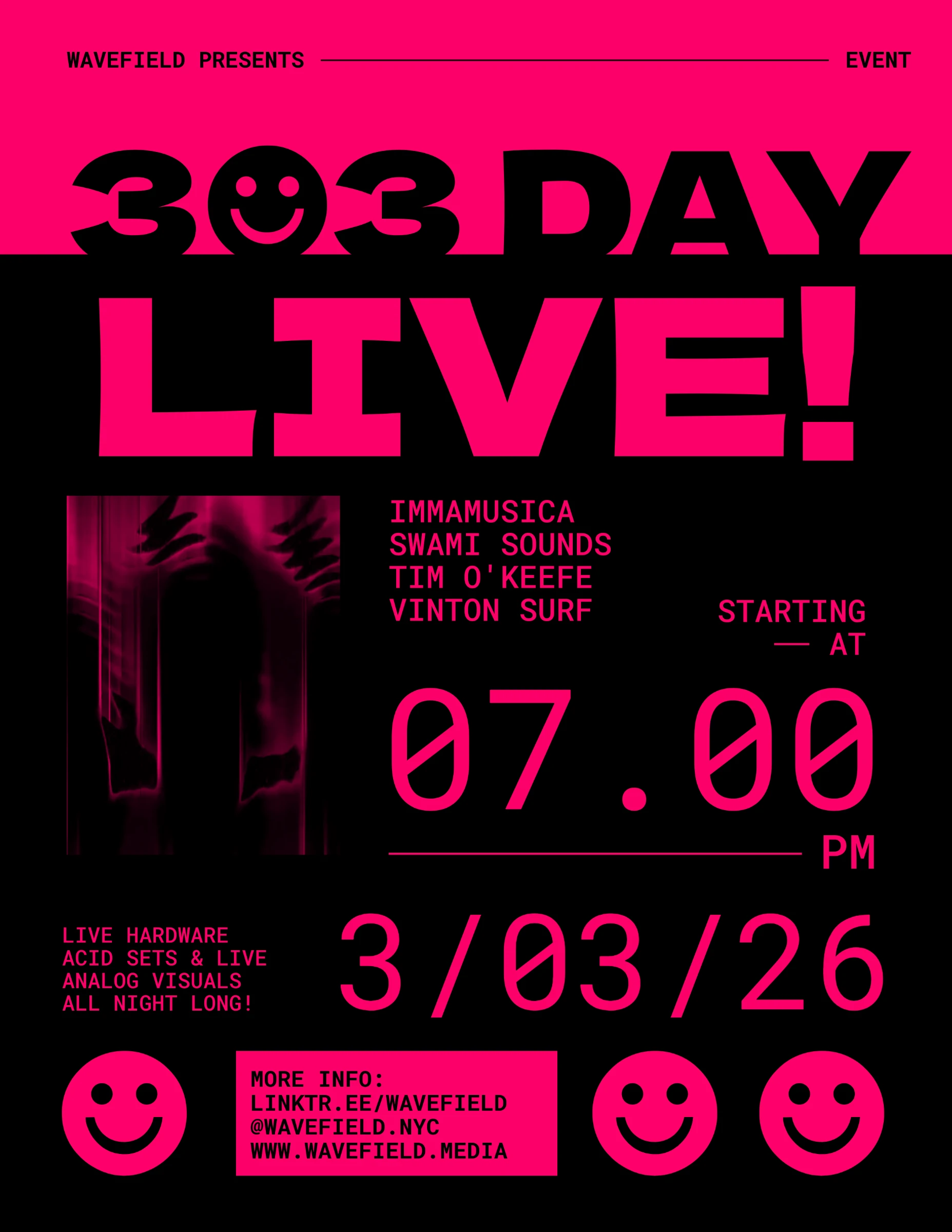 Come help us resist Kikumoto's wiley attempts and celebrate the instrument that started it all, the TB303 on Tuesday March 3rd! Join us for a night of live hardware acid and live visuals, featuring immamuscia, Tim O'keefe, Swami Sounds, and Vinton Surf.