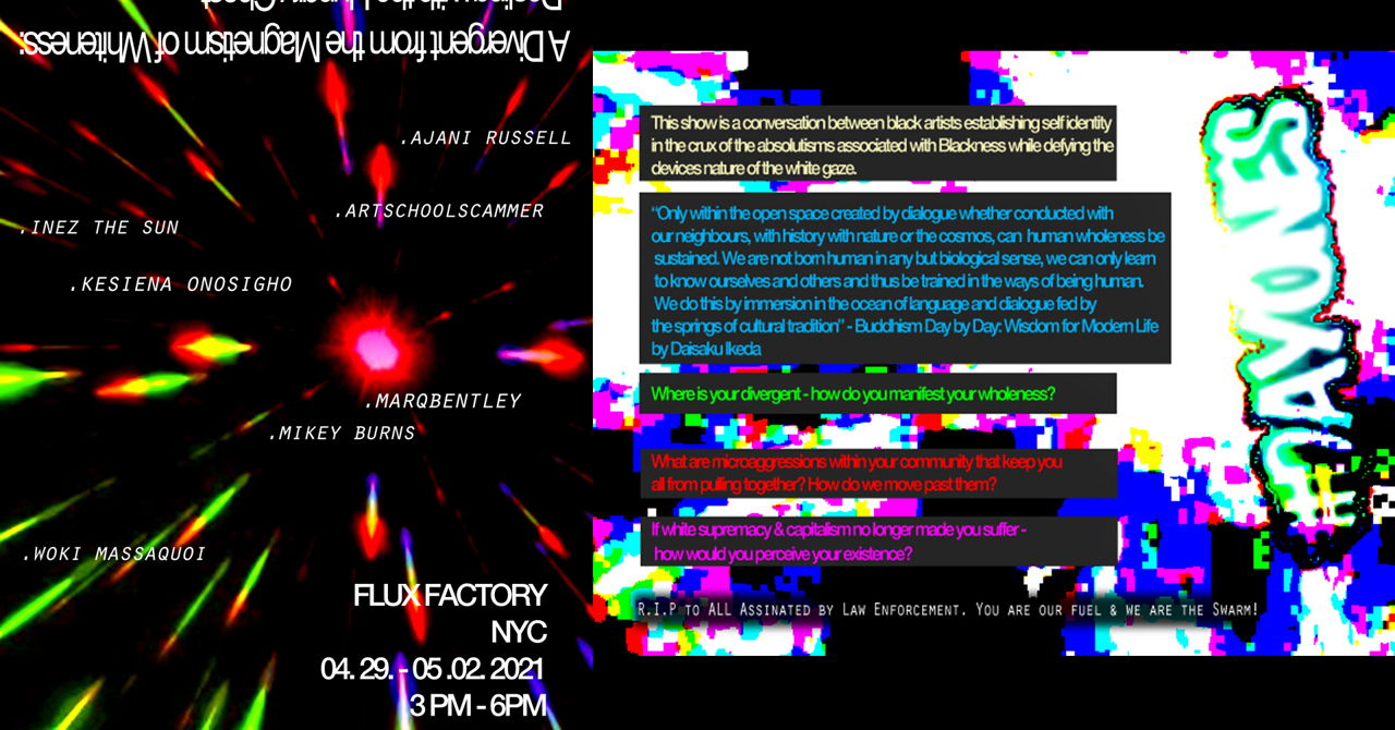 A Divergent from the Magnetism of Whiteness: Dealing with the Hungry Ghost is supported by the Flux Factory Rhizome Project. The Rhizome Project is a commitment to give intentional space to Black voices, and provide a platform for Black narratives by offering the support needed to help these narratives thrive and evolve.