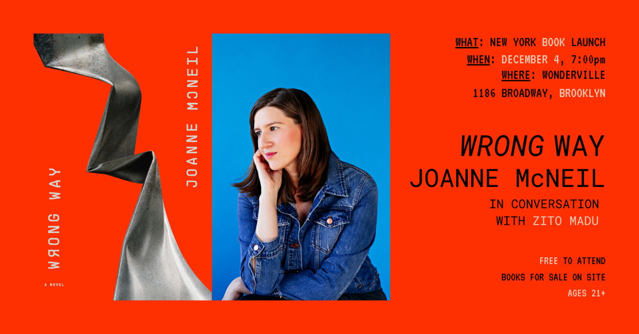 Join author Joanne McNeil at the New York launch of her debut speculative fiction novel WRONG WAY. Joanne will be in conversation with Zito Madu, author of The Minotaur at Calle Lanza. She'll be signing books at the end, which will be available to purchase on site.