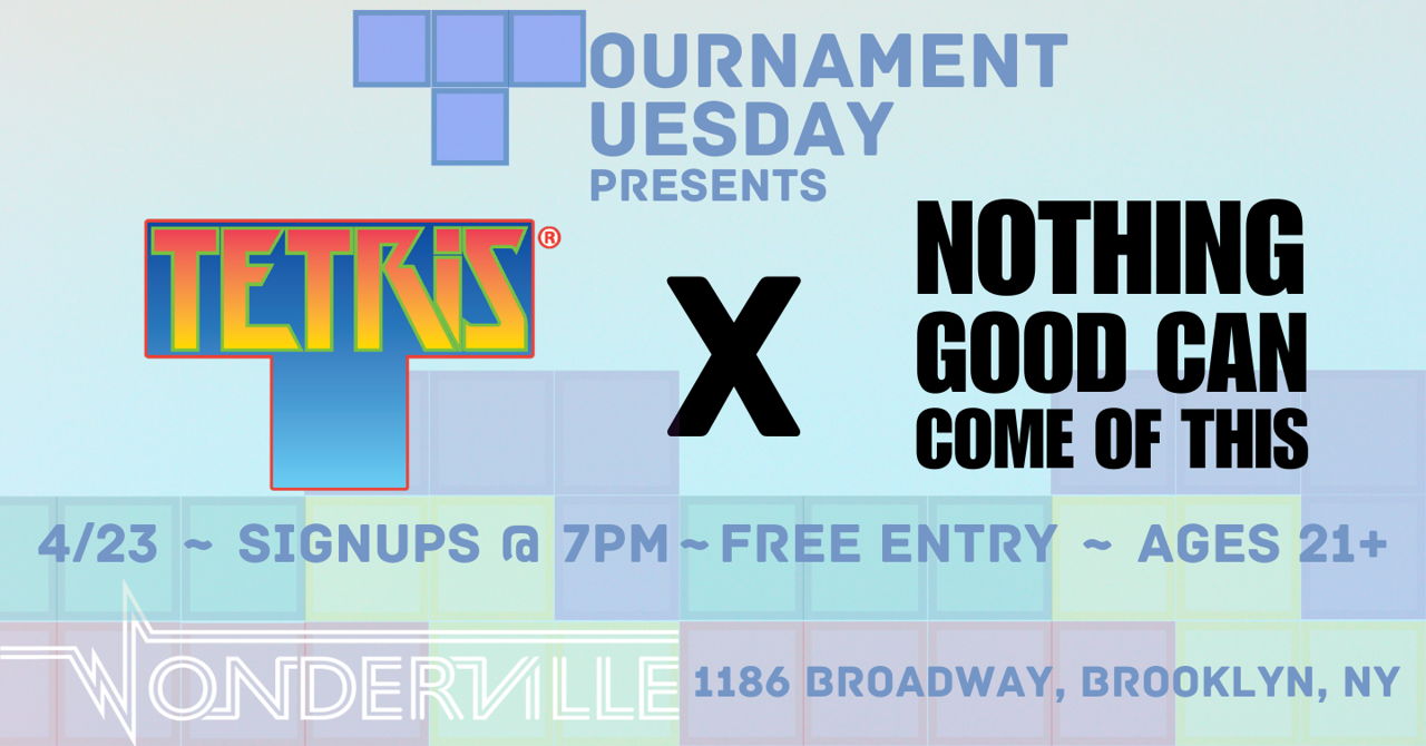 Our monthly tournament series continues with a double-dose of arcade action! First, join creator Michael Consoli as he locks you and an opponent in a (virtual) room with a (virtual) gun - Nothing Good Can Come of This! Then, hosts Ivy & Miel will test your classic puzzle skills in head-to-head Tetris! As always, entry is free! Fight your friends and have a great night!