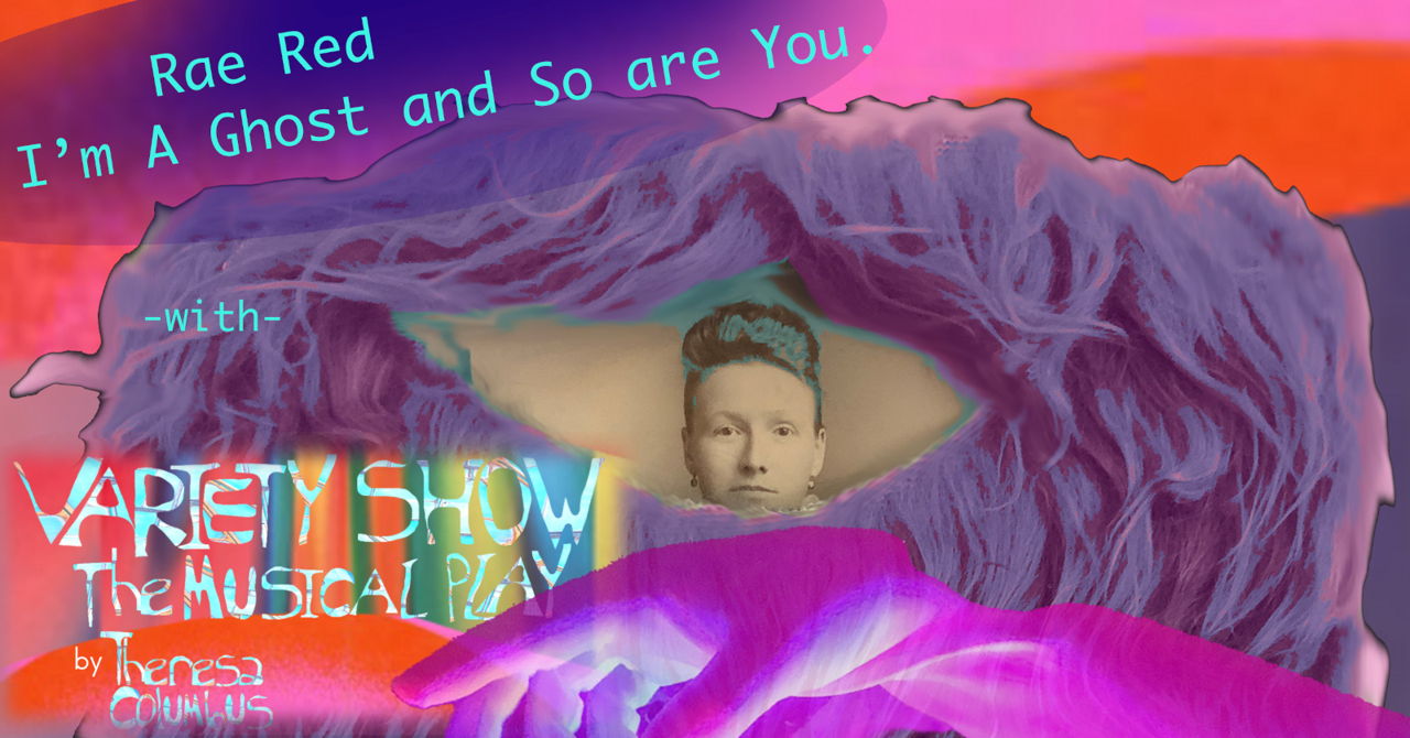 Queer Futures Past (I am Ghost and So Are You) is a multimedia installation and performance project examining personal and inherited queer erasure. Rae Red playfully address their secret, ignored, and partially imagined queer lineage through animation, movement and song. Using a playful adaptation of Spiritualist ideas of the 1840s as the visual landscape of the piece, Queer Futures Past crafts a non-linear narrative experience combining personal, familial, and cultural histories, summoning spirits, and examining notions of harm and healing.