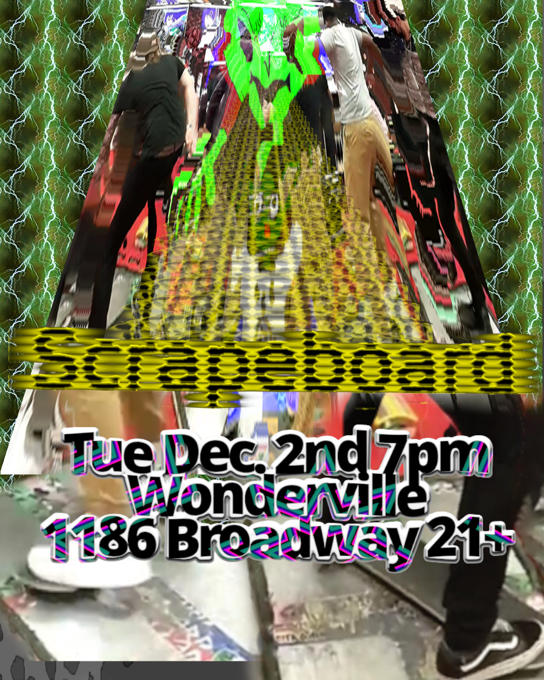 Hey slime bag! Every month, we're bringing Scrapeboard to Wonderville on the first Tuesday of the month. Come through to play an arcade game that uses a real skateboard deck and metal floor pads as the controller. Challenge a boss rush where you must perform combos using the skatedeck and floor pads to block sword attacks from Tony Hawk’s hardest hitters, including Kool Man, an alien, and a Nintendo Switch.