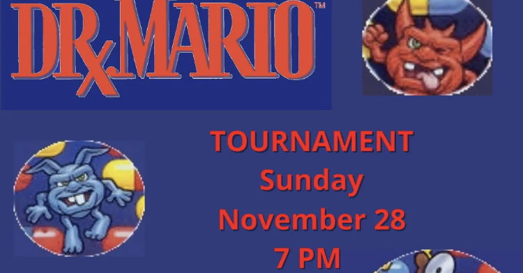 Video Game night hosted by Logan Clare & Larry Siminski is BACK The November Tournament will be Dr. MARIO Streaming live on TWITCH: https://www.twitch.tv/JustLoggy 7PM-9PM / Vax Only / 21+ Sign up at 6:30!!!!!!!!!!