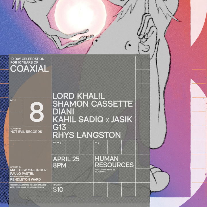 As part of Coaxial's 10th Anniversary celebrations, we're excited to welcome back Not Evil Records for a night of music and art hosted by Frankie Jax No Mad. Beats, rhymes, live animations, food, and much, much more!