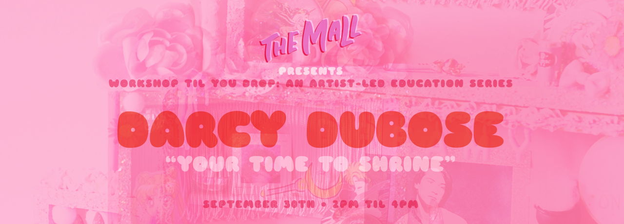 Fourth in The Mall's new ongoing series, Workshop Til You Drop, we present Darcy DuBose's ultimate shrine-building how-to! Using a little glitter and glue, along with your personal mementos, together we'll create a shrine that embodies whatever magic you place on it! A dedication to something or someone meaningful to you or even just a reflection of your personality, let your shrine encompass whatever theme you connect with.