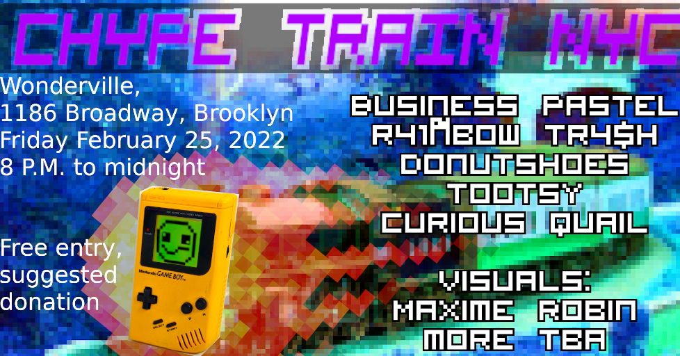 Searching for the perfect balance between hype and chill vibes, a bunch of chip musicians get together on board the CHYPE TRAIN, a vehicle built to traverse time and space, breaking unexpected boundaries and making ephemeral bonds timeless.