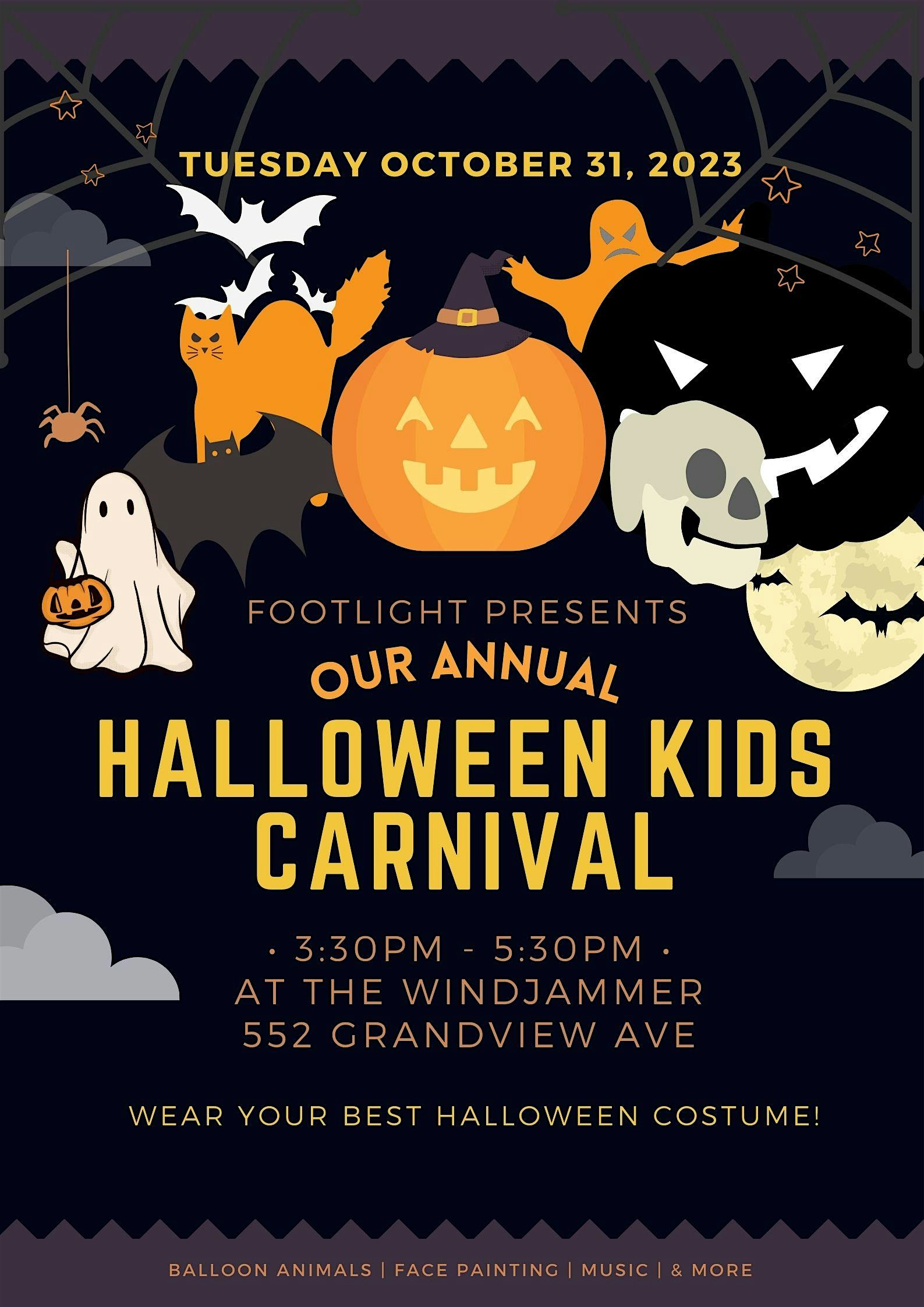 Footlight Presetns is hosting a few artists in the backroom of The Windjammer to engage with our neighborhood kids while they Trick or Treat with their friends and family!