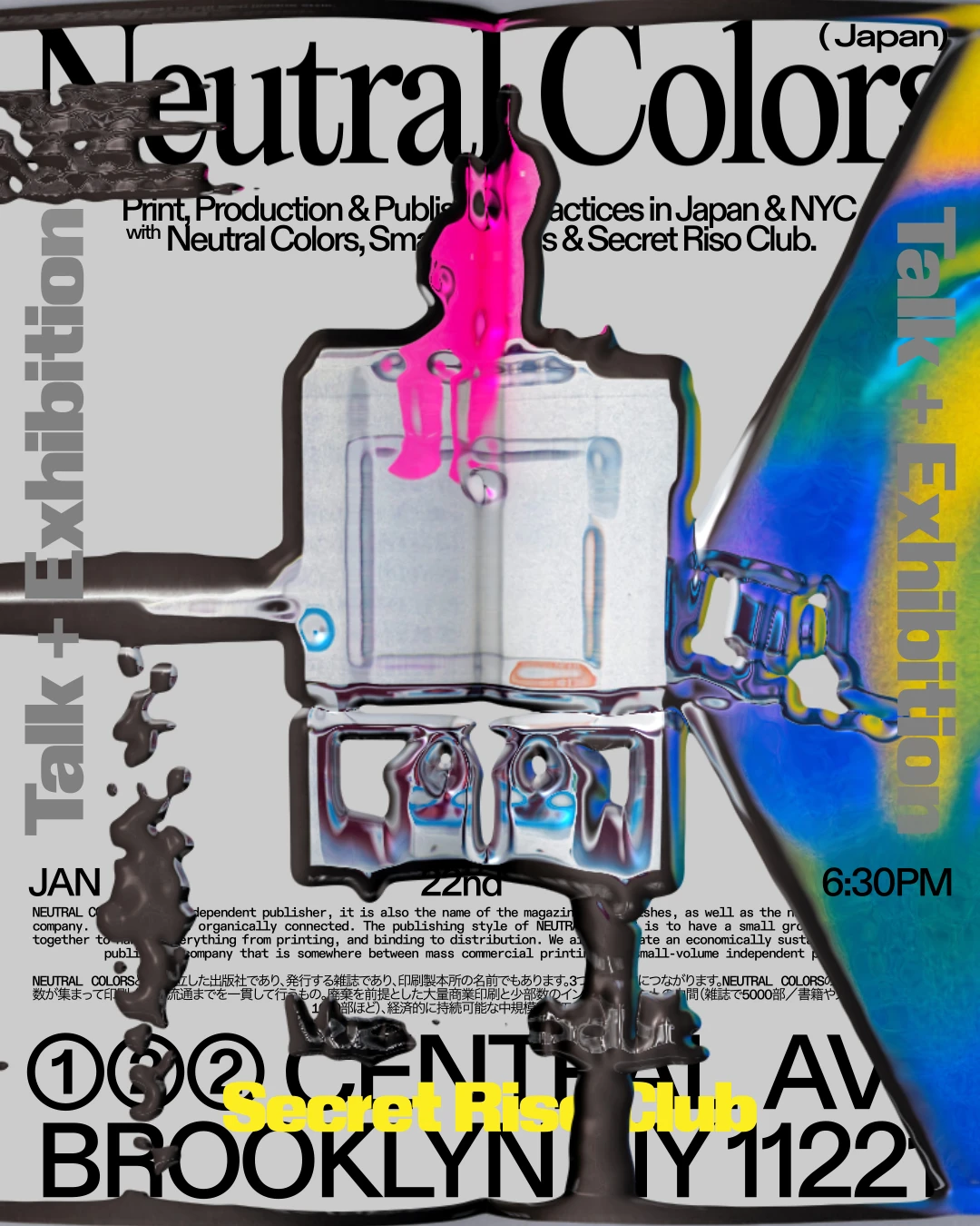 Join us for a discussion of Print, Production & Publishing Practices in Japan and NYC with Neutral Colors, Small Editions and Secret Riso Club.