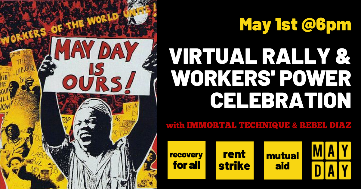 Únase al equipo de Mayday Space para una "Manifestación Virtual y Celebración del Poder de lxs Trabajadorxs" para conmemorar nuestro feriado homónimo y para elevar la acción colectiva como la única solución real a las múltiples crisis planetarias que enfrentamos.