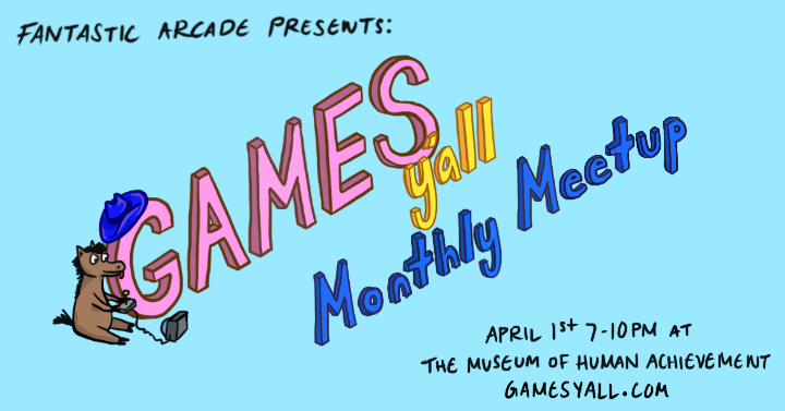 Games Y’all is a casual meetup hosted by Fantastic Arcade for indie devs, digital artists, and games fans held on the first Friday of every month.