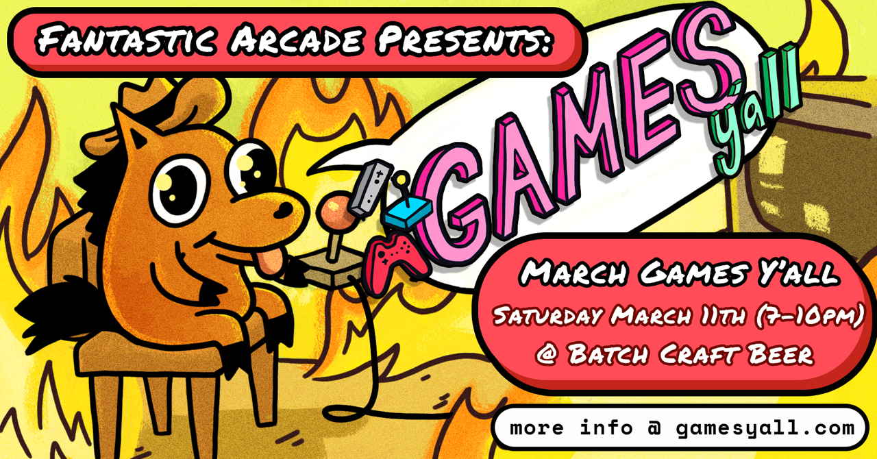 Games Y’all is a meetup presented by Fantastic Arcade & The Museum of Human Achievement, held every month at venues around Austin for indie devs, digital artists, and games fans.