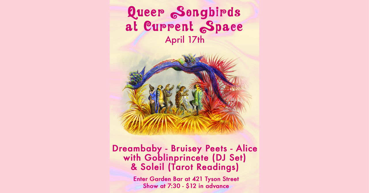 Join us for an evening of queer music and magic, with a DJ set from Goblinprincete, Tarot by Soleil, and music from Alice (of Gingerwitch), Bruisey Peets (New Orleans, Y'allstar Records), and Dreambaby.
