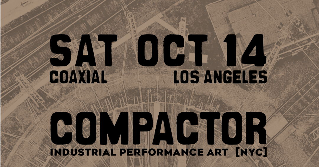 Coaxial Arts welcomes the cryptic and perplexing Compactor from NYC. The Worker will be supported by following Co-Workers: Malfet, Nephila, Rust Worship, and Morher.