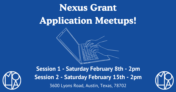 The Museum of Human Achievement is hosting two Grant Application Hangouts for individuals or organizations seeking assistance with applying to the City of Austin's Nexus grant program. Join us at our hangouts where we will offer an overview of this years application, 1:1 support, and a friendly environment to co-work with other community members on your applications