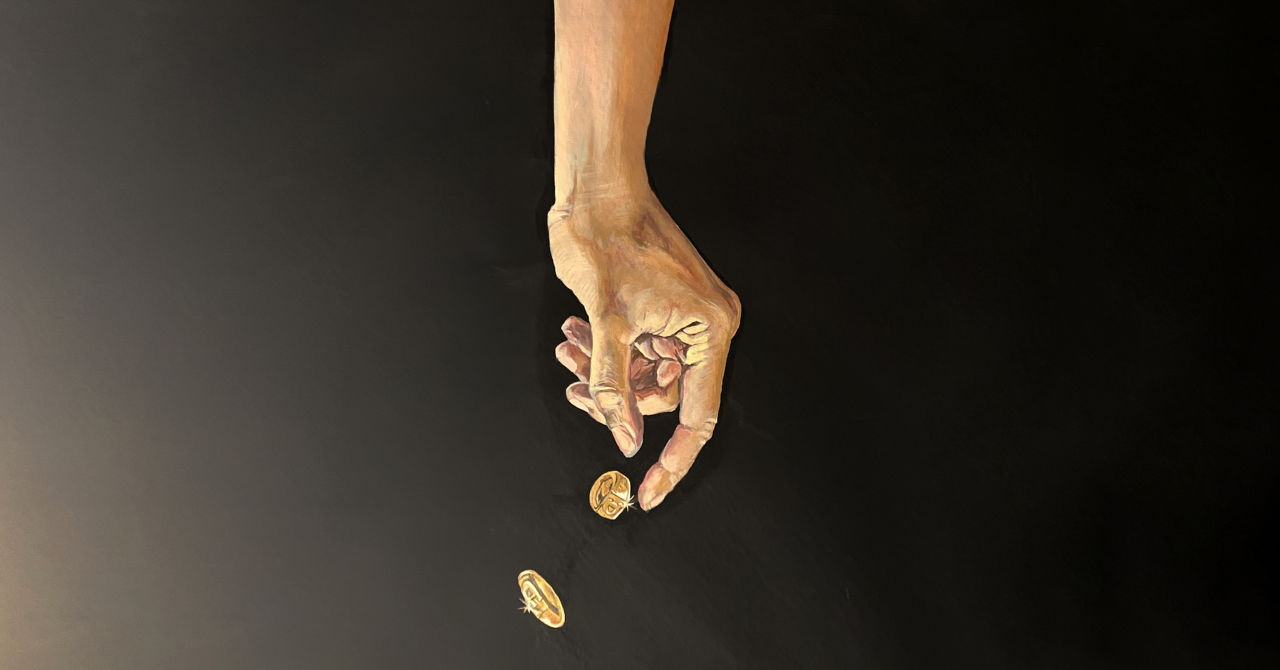 Don't Let It Slip Through Your Fingers is an acrylic painted and assembled work that is inspired by the loss of a cherished object. Objects are endowed with the power of reference to memories, philosophies and in some cases, spiritual connection. Very often when an object is lost, so too are the memories that they inspire. This work is to honor those memories and experiences by memorializing what was lost.