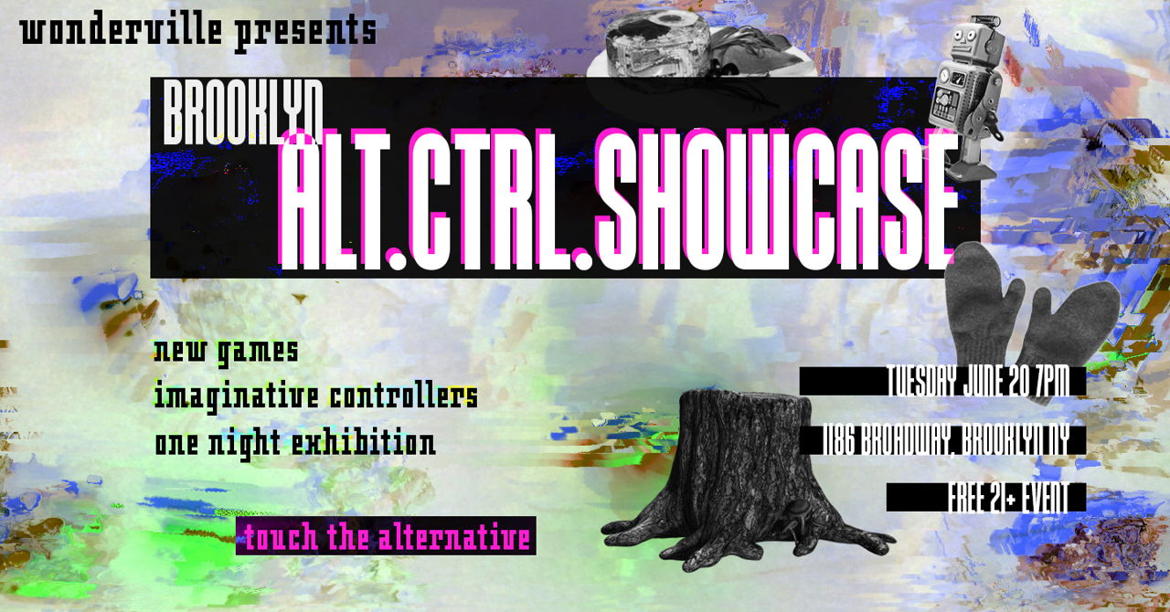 Inspired by GDC's annual Alt.ctrl showcase, this event will see Wonderville's bar and gallery space populated with creations that will twist and pull on your understanding of what "input" means. Be prepared to squish, flail, smash, and stretch your way to success.
