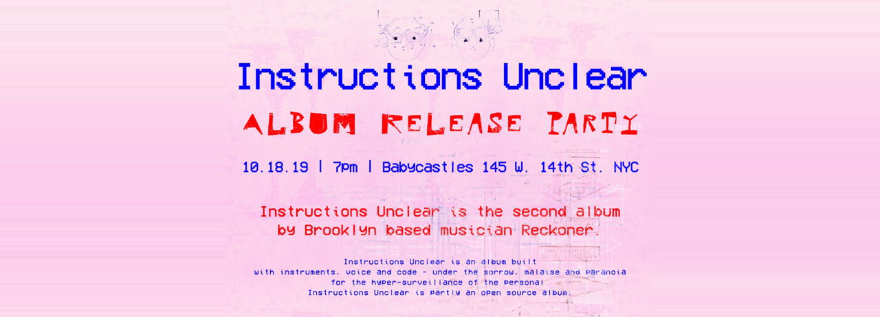 Instructions Unclear is the second album by Brooklyn based musician Reckoner.