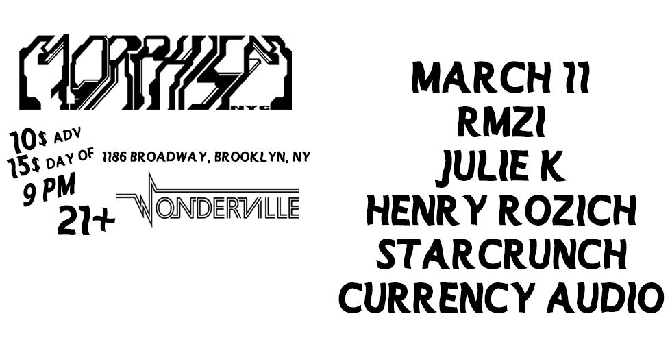 Morphism returns for their second Wonderville show this year. Close friends of Morphism Julie K and Starcrunch will be bringing their own eclectic selections, Currency Audio returns to Morphism to bring the jungle heat, RMZI has his Morphism debut, bringing his expert music selection, and Henry Rozich brings their own flavor of hardcore.