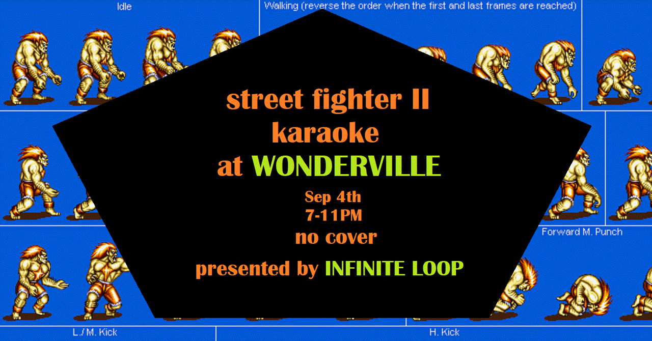 The 2 greatest creations of humankind are Street Fighter II and Karaoke. So on July 24, come spend your time at Wonderville in a unique celebration of Chun Li, Ryu, and Karaoke!
