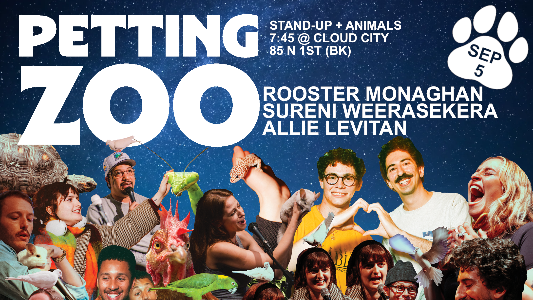 Welcome to the Petting Zoo. This is the world’s only comedy show featuring live exotic animals. New York’s top comics have to perform while holding snakes, birds, lizards, bugs, and other cool creatures. Between sets, you can interact up-close with the animals and learn from Ranger Eric Powers and his team of professional nature guides. We promise you haven’t been to a show like this.