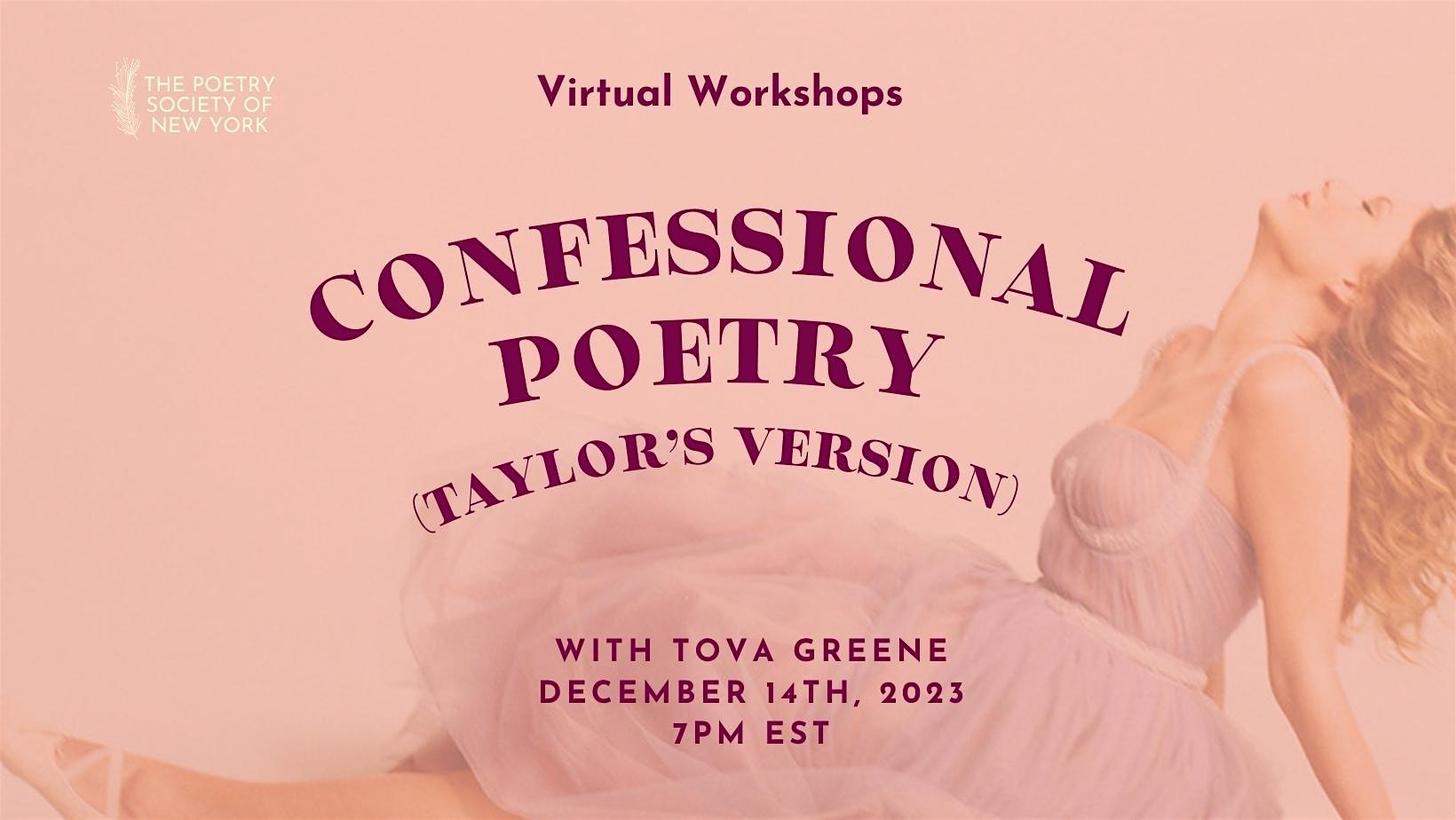 In this workshop, we'll look at OG and modern confessional poets—ranging from Sylvia Plath to Danez Smith, Anne Sexton to Kaveh Akbar—all leading to the woman of the hour. We'll learn about the history of confessional poetry and its emergence out of (and potentially in opposition to) 20th century modernism. We'll chat about why the term has caused such a divide in the literary community and what it really means. Through generative writing exercises, we’ll uncover how we can incorporate aspects of confessionalism into our writing practice. And, of course, we'll listen to a lot of Taylor Swift.