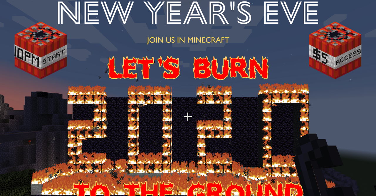 We frustrated, we are angry, and we’d love nothing more than to burn this year to the ground. So we’re inviting you to join us in our Minecraft Wonderverse. At midnight, we will turn on elements like lava, TNT, zombies, and anything that can cause destruction. We’re going to burn it to the ground in a cathartic group anguish.