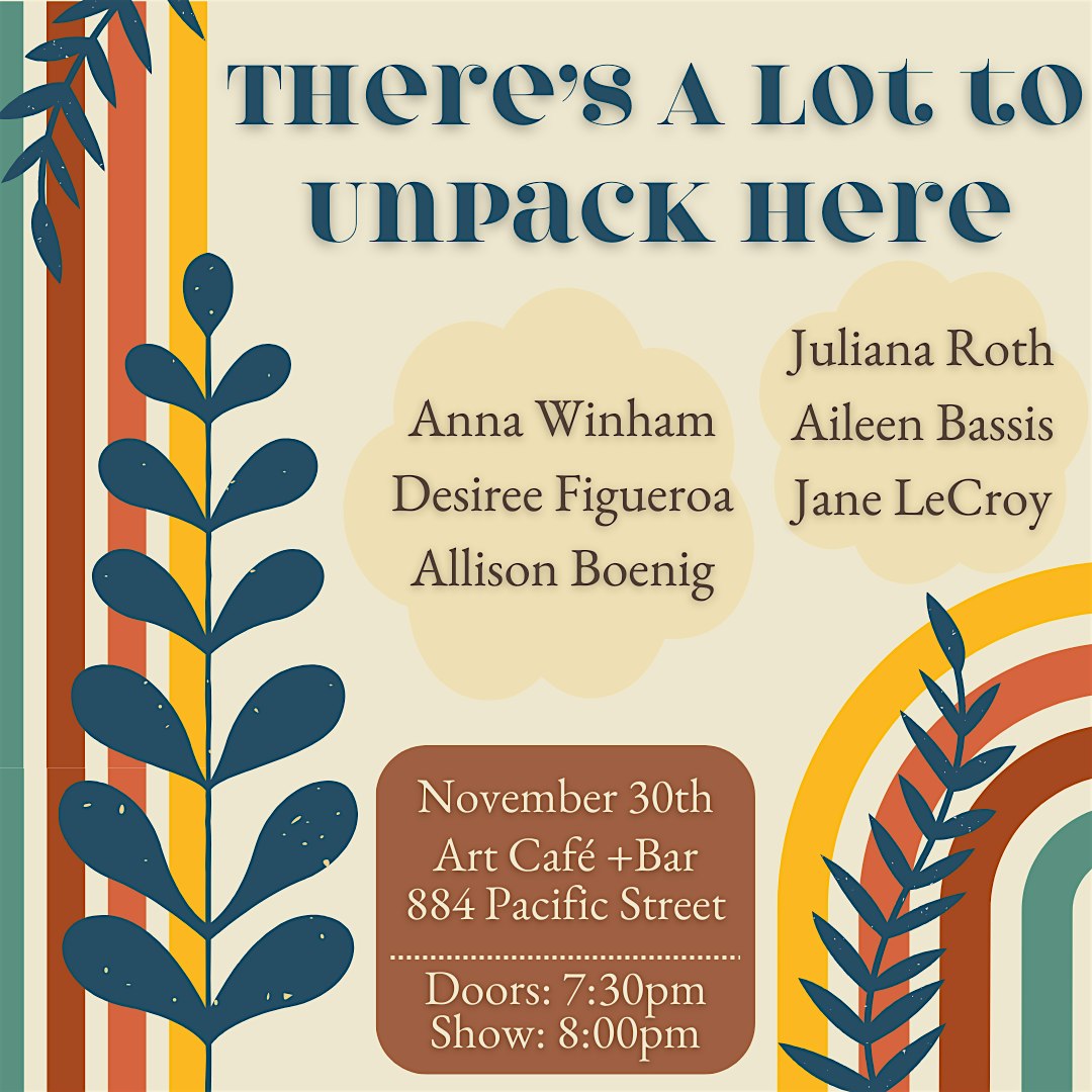 There’s A Lot to Unpack Here is a poetry and storytelling series that breaks the cardinal rule of art – actually explaining what is going on in a piece. It is an evening that invites poets, patrons of the art, and those who have said “I don’t understand what any of this means” alike to a space that facilitates sharing original work and the education of poetics through interviewing its readers before a live audience.