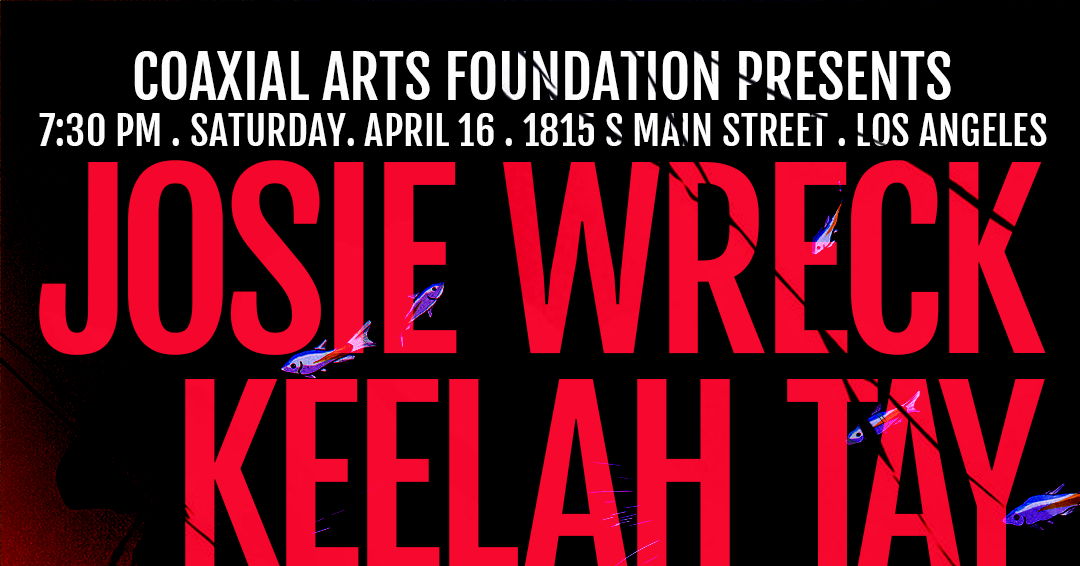 Coaxial Arts Foundation Presents: Josie Wreck, Keelah Tay, Soltera, Yosi 7:30 PM Saturday, April 16th $10 Limited Capacity Mask wearing is required indoors. N/95, KN/85 or /Surgical masks recommended.