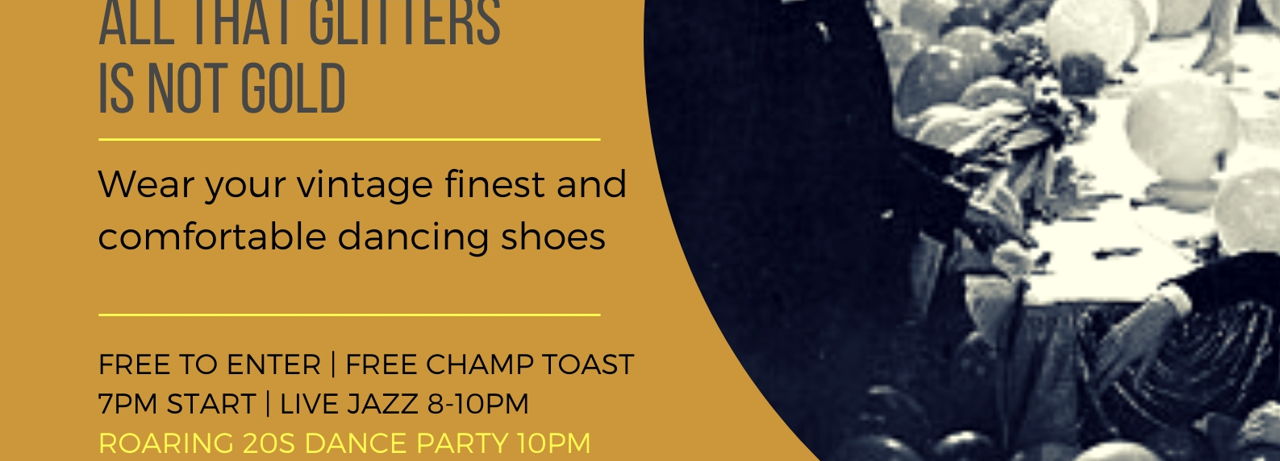 Suits/ties/flapper dresses and other roaring 20's themed attire encouraged but not necessary! All that glitters is not gold, but the Footlight will be full of glitter and gold all night! Live JAZZ in the back room at 8PM DANCING IS ENCOURAGED.