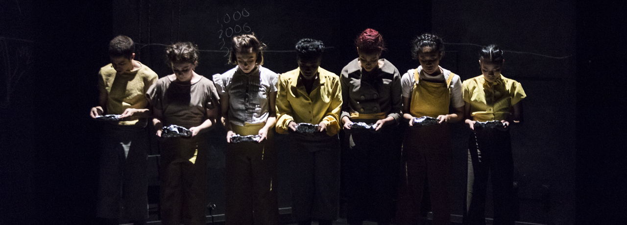 Using the U.S. government-sanctioned Japanese internment camps during WWII as a dramaturgical framework, The Spectacular Society interweaves evocative movement, live sound, and unconventional spatialization to explore how ethnicity and identity can be negotiated and performed. This intimate 60-minute performance follows seven dancers through vignettes of calm and chaos as they explore themes of dislocation, witnessing, silence, patriotism, community, and spectacle. Drawing from both historical research and her grandmother’s personal accounts of “camp,” choreographer Marissa Osato employs visceral, intricate, and highly-charged contemporary dance movement to re/present an embodied archive of the past while provoking questions about present societal repetition.