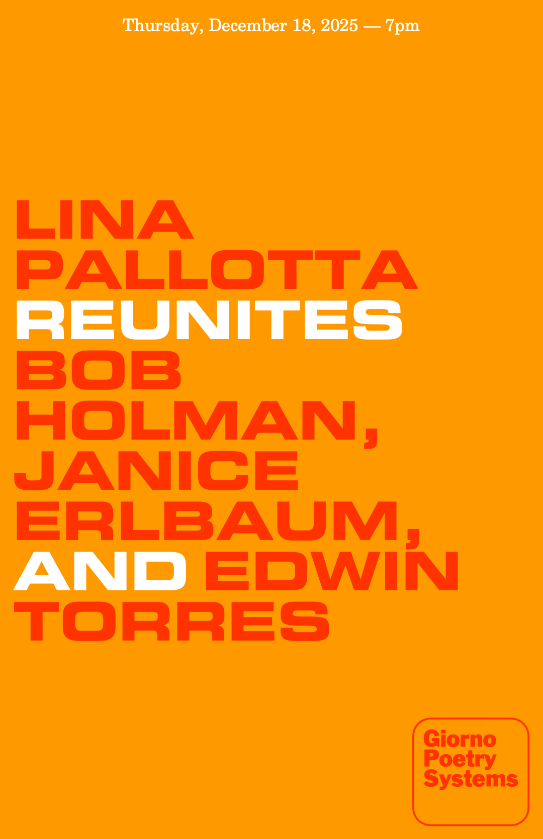 For this event, Lina hosts a conversation between Bob Holman, Janice Erlbaum, and Edwin Torres, who share their reflections on what it was like back then, and what it’s like now.